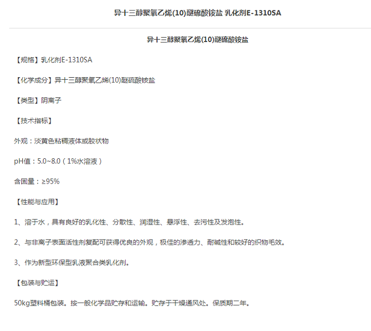 E-1310SA 异十三醇聚氧乙烯醚磺酸铵盐