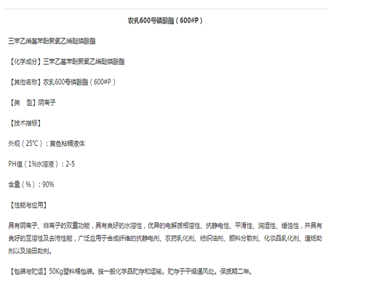 三苯乙烯基苯酚聚氧乙烯醚磷酸酯 600#P 农乳600号磷酸酯