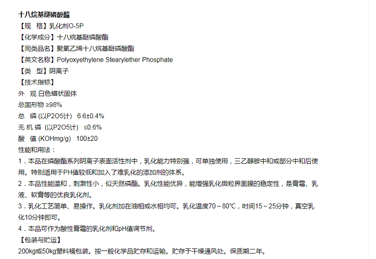 聚氧乙烯十八烷基醚磷酸酯 乳化剂O-3P