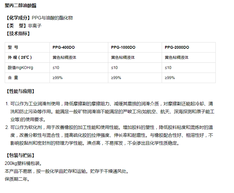 聚丙二醇油酸酯 PPG-400DO PPG-1000DO PPG-2000DO